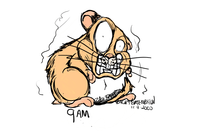 Post Election Morning Hamster. Artist: Rach Featherston 2020