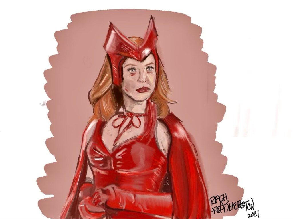 I LOVED Wanda Vision! I loved it so much I drew Elizabeth Olsen as Wanda! Artist: Rach Featherston, 2021.