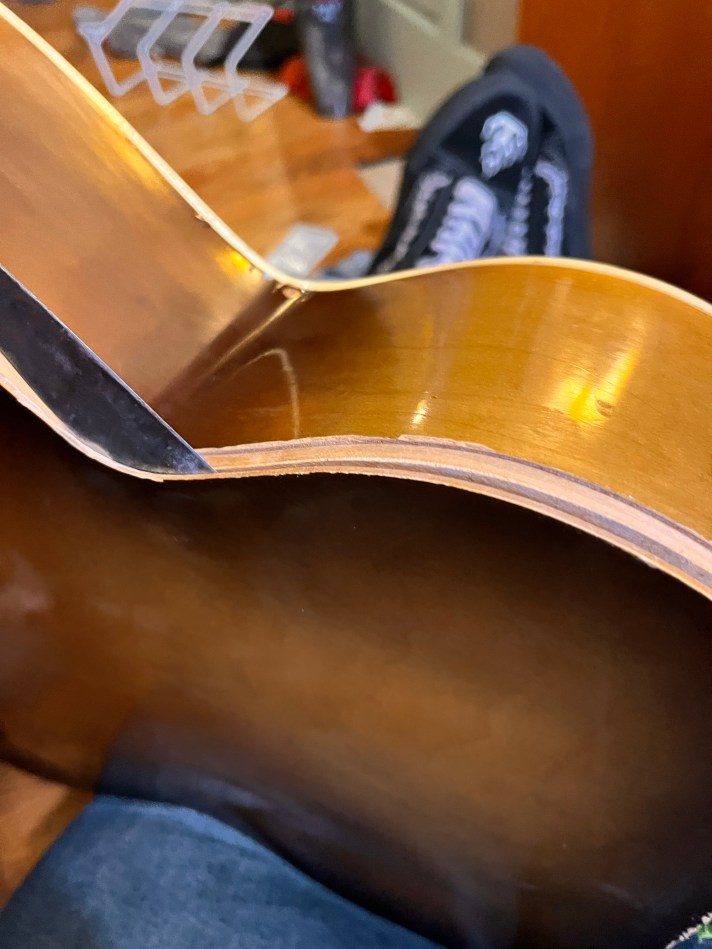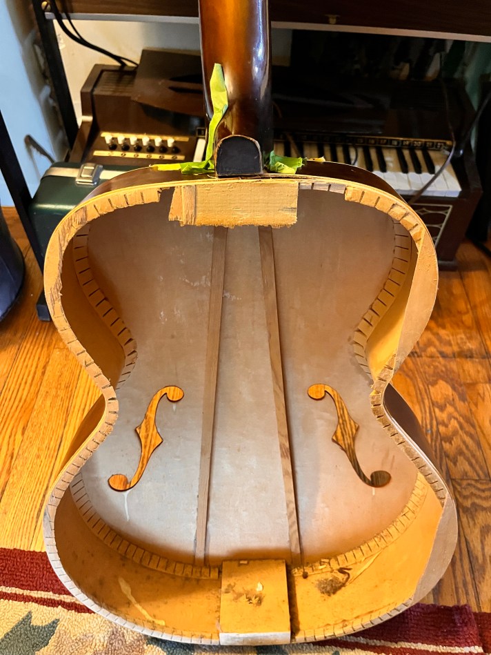 My other passion is music. I picked up a Silvertone acoustic in auction, sadly they didn’t photograph that it had a problem. So I had to take it apart in order to even get to the neck. It was nailed. It took a day to get the neck removed! It’s a mess and still a work in progress!