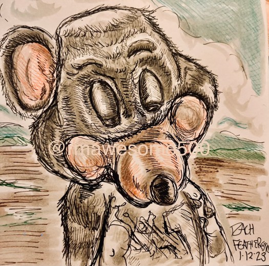 Nolan Bushnell bought the first Chucky at a convention. He thought it was a wolf. Turns out it was a rat! Fanart by Rach Featherston 2023