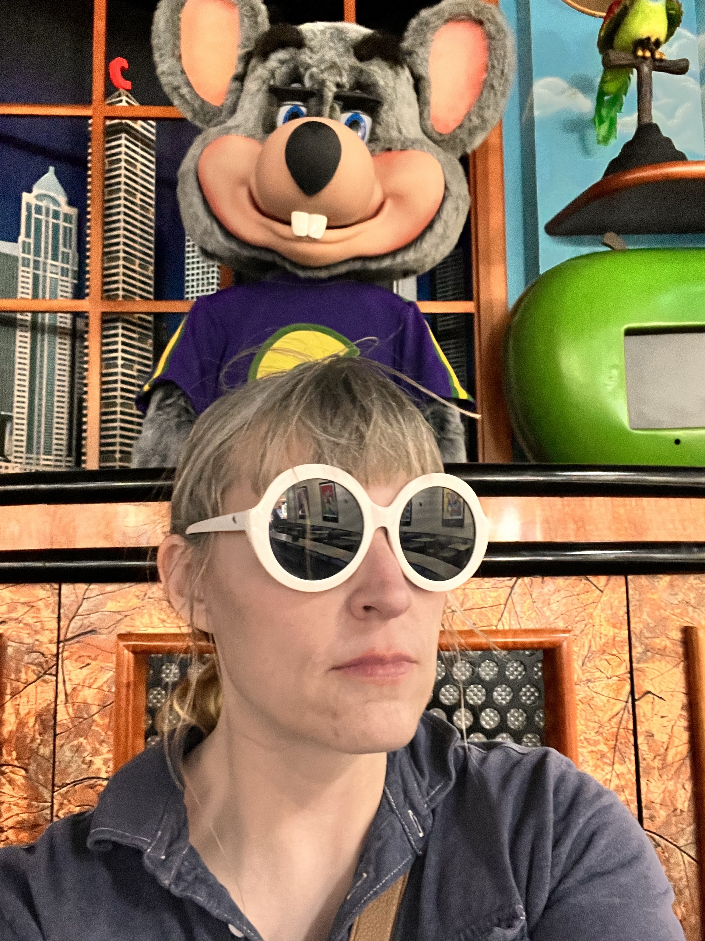 I went to Chucky E. Cheese for my birthday. Not as cool as it was but kiddo and I had a blast.