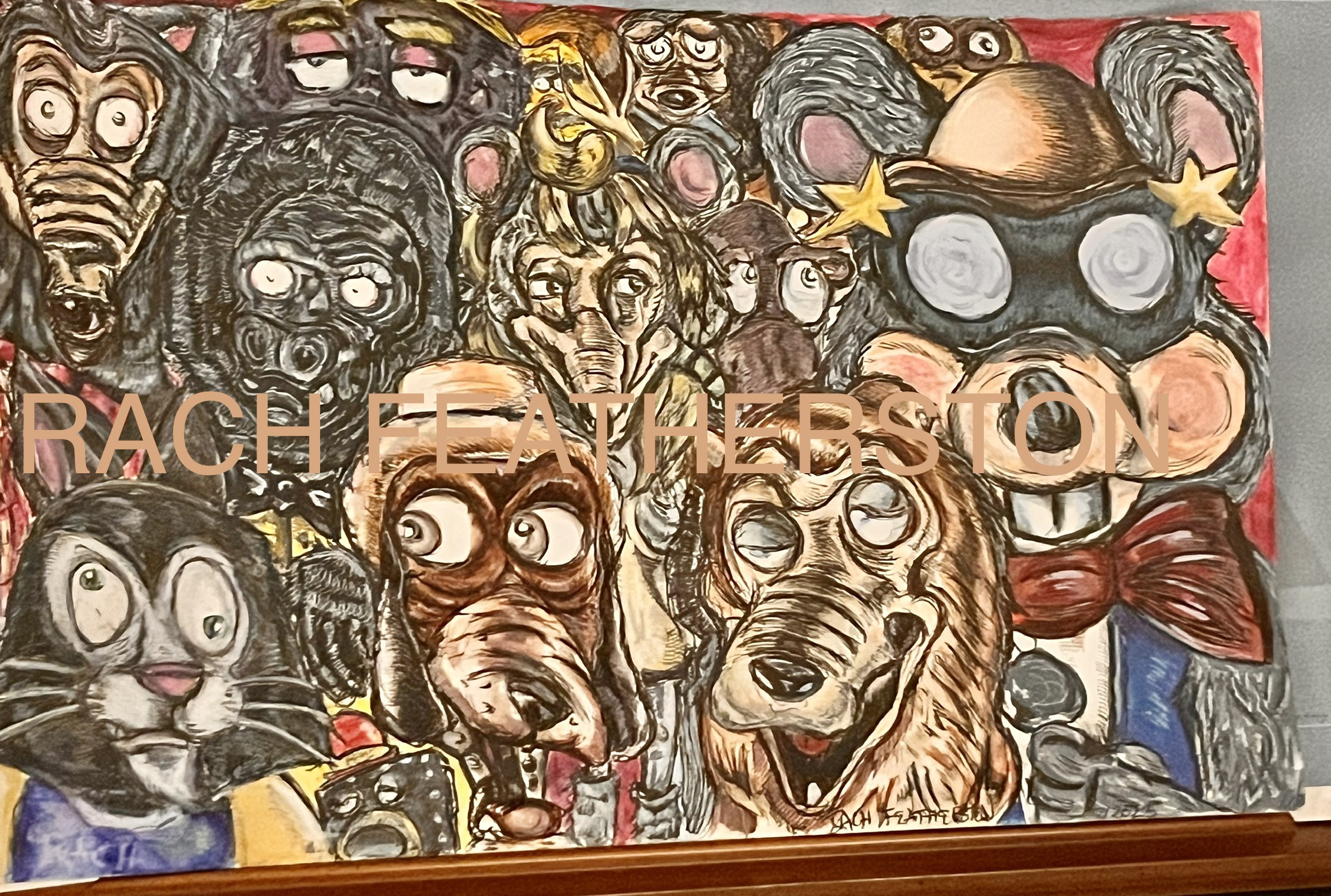 18×24 pen and ink. The CEC/Showbiz world in my style! Fanart by Rach Featherston, 2023.