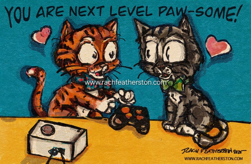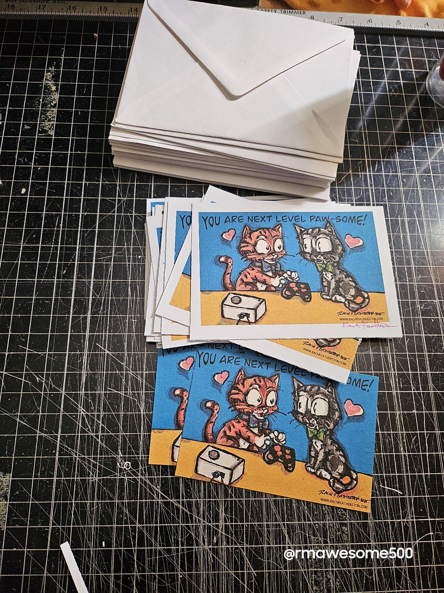 Ah yes, the yearly Valentine’s Day cards rush. I upgraded Procreate and added a build your own comic book program from True Grit. Really fun brushes and vibes. These cards are printed on high-end printmaking acid-free paper. Each one is signed digitally AND by hand. If you have ventured here from receiving one, you can claim 20 percent off your next order! Offer is only good for those kiddos and their parents, plus staff. Offer ends 2/28/2025. You can email me or dm me on social. Happy Valentine’s Day, remember you are paw-some!