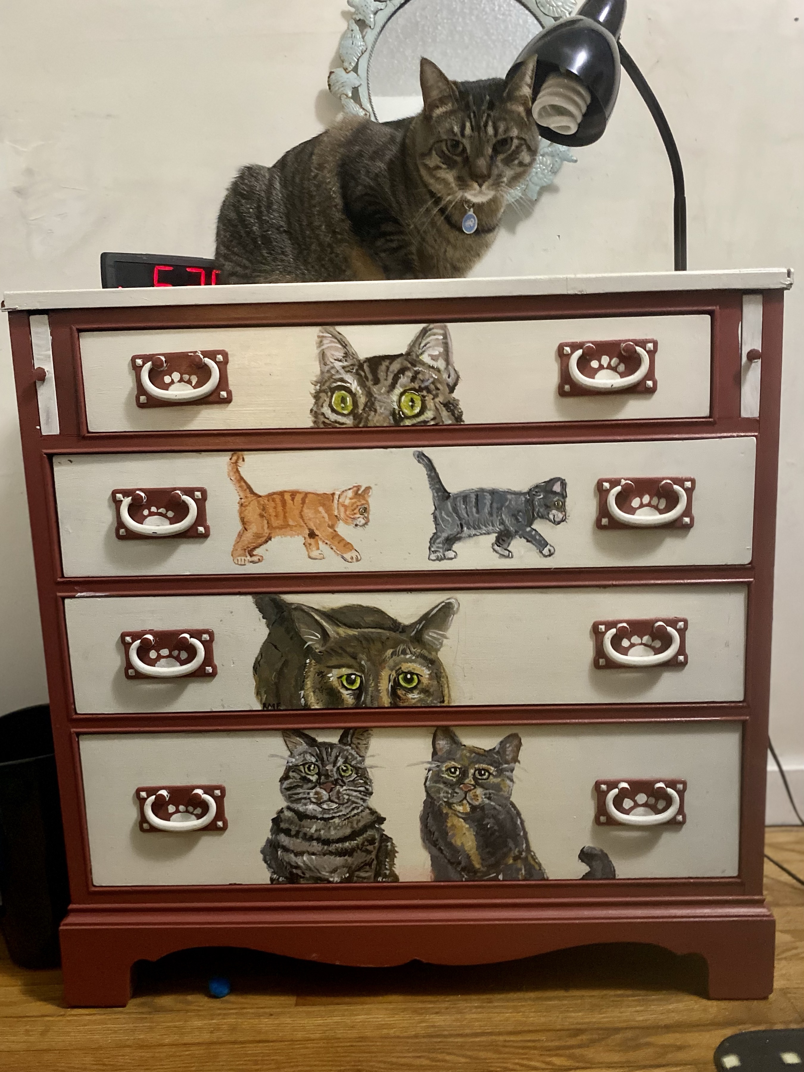 Furniture Restoration and Painting, 2019. My cats on a bureau
